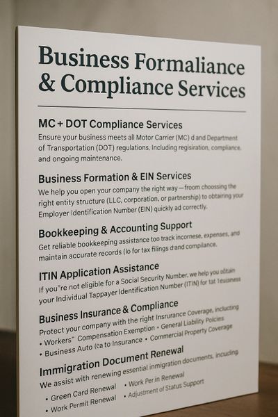 We help you open your company the right way — from choosing the right entity structure (LLC, corporation, or partnership) to obtaining your Employer Identification Number (EIN) quickly and correctly.